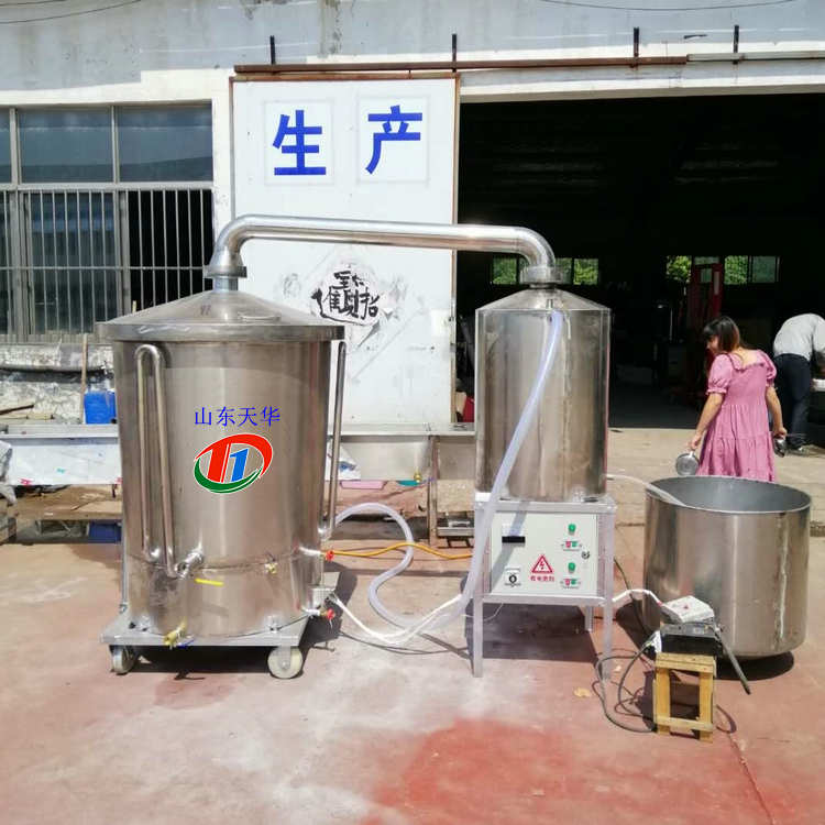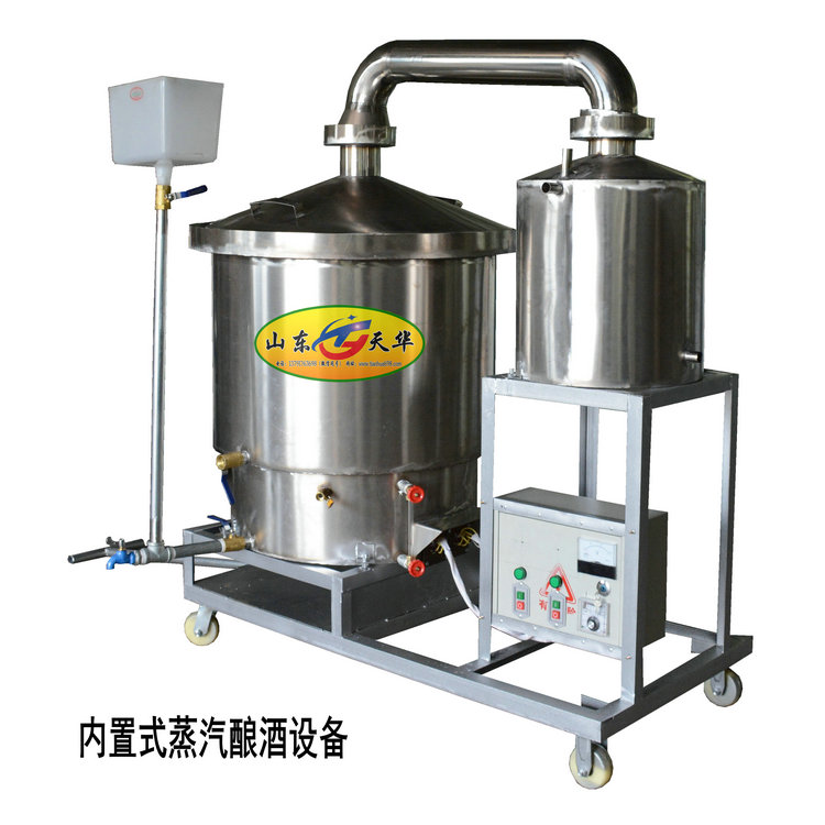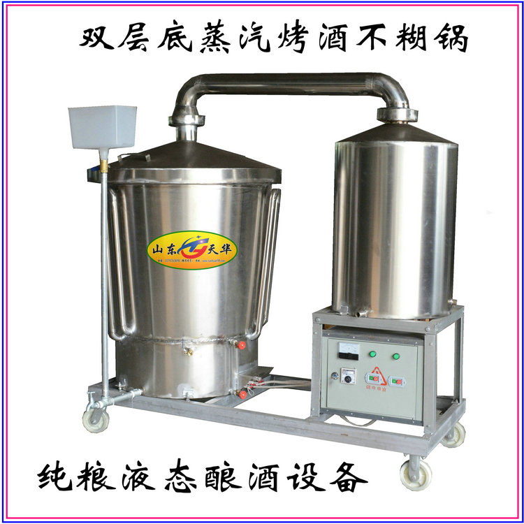 天華新型蒸汽式釀酒設(shè)備整機(jī)裝在可四輪拉車上,移動(dòng)、使用方便,安全可靠,以電加熱或煤氣加熱蒸酒,操作簡(jiǎn)單,衛(wèi)生環(huán)保,便于流動(dòng)或上門蒸酒,是家庭,集貿(mào)市場(chǎng)、小型酒坊進(jìn)行糧食酒蒸餾的理想設(shè)備,它的出現(xiàn),使人們告別了勾兌酒,可以飲用健康放心的白酒,同時(shí)也提高了糧食轉(zhuǎn)化收益。