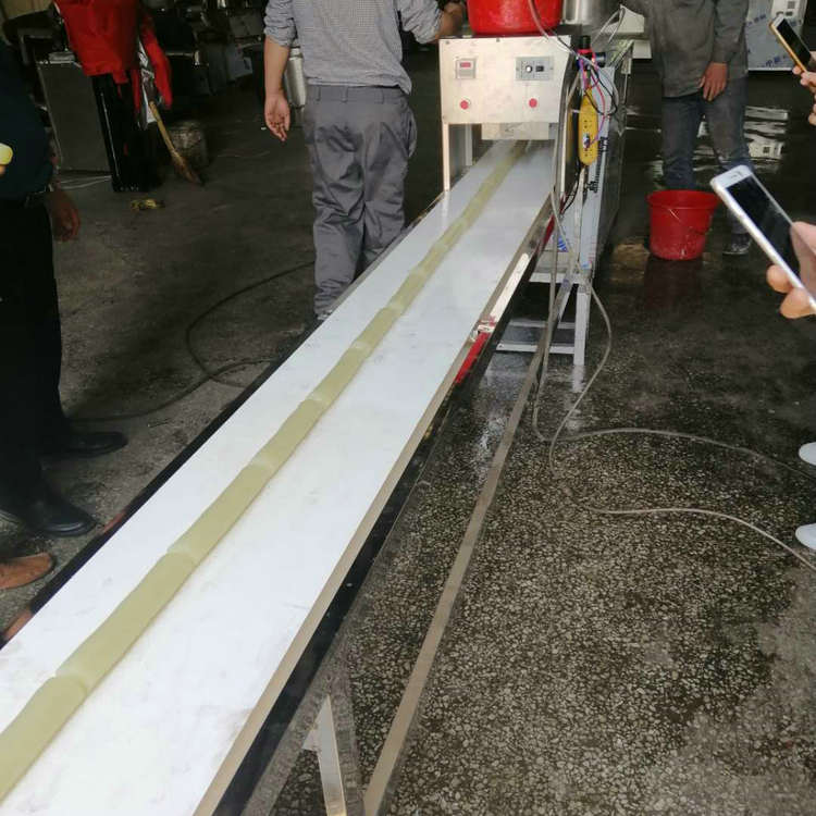 天華機(jī)械公司研制生產(chǎn)的電熱自熟式蝦片機(jī)、自動(dòng)擠棒機(jī)為機(jī)電一體化設(shè)計(jì),由水浴蒸箱、電熱裝置、螺旋絞龍、成型模具和數(shù)控切段機(jī)組成,外觀精美,結(jié)構(gòu)緊湊,占地面積小,整機(jī)組裝簡(jiǎn)便,運(yùn)行平穩(wěn),具有較高的機(jī)械化、自動(dòng)化水平,是生產(chǎn)蝦片年糕片的理想設(shè)備。其性能優(yōu)點(diǎn)是: